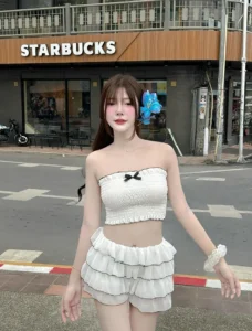 ทีนี้เราขอแนะนำให้ กดติดตาม ผลงาน กันได้เลย ยอมรับเลยว่าเด็ดมาก ความสวยขาวน่ารักของน้องดูฟินจริง ยิ่งตอนไปเที่ยวทะเล น้องจัดงาน ชุดว่ายน้ำทูพีช ให้ดูกันตลอด อย่างลุคนี้ที่เป็นทูพีชสีดำ ลายตาข่าย นั่งเล่นชิลริมสระ เห็นแล้วฟินมาก หรือจะลุคไปเล่นน้ำสระตอนกลางคืน ชุดน้องก็น่ารักนะ เป็นชุดวันพีชสีฟ้าอ่อนคาดแดง น่ารักมาก ฟีลแบบสาวน่ารัก ทะเล้นแบบลูกแมวมาแง้วๆ เพื่ออ้อน ขอเล่นน้ำนี่แหละ เจอแบบนี้เข้าไปบอกเลยว่างานดีจ้า กดดูต่อในไอจี เท่าที่เห็นก็จะเป็นคอนเทนต์แนวสาวน่ารัก ที่ไปเที่ยวแล้วก็แต่งตัวออกแนวน่ารักสาวญี่ปุ่นมาก ชุดนี้เราว่าน่ารักเลย เสื้อเดรสเกาะอกสีชมพูพาสเทลกระโปรงสั้นสีเทา ของดีเลย ถ้าน้องขอไปรีวิว หรือปักตะกร้าขายเสื้อผ้าชุดนี้ เชื่อว่าสาวน่ารักหลายคนน่าจะขอซื้อมาใส่ตามกันหลายคน อีกชุดที่เราชอบ เป็นชุดไปเที่ยวสายน่ารักอีกแล้ว กับเสื้อกล้ามตัวเล็กสีเหลืองเข้ม กางเกงขาสั้นยีนส์ มัดผมยกสูง น่ารักสดใสมาก ยิ่งตอนยิ้มนี้แบบว่าใจละลายไปเลย งานดีน่ารักจัด ชอบมาก